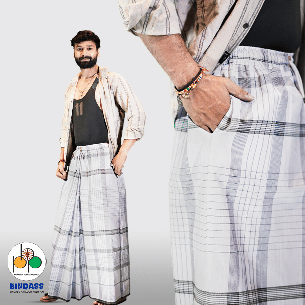 Authentische Lungi für Herren - traditionell und super bequem! Aus weicher Baumwolle - angenehm auf der Haut und atmungsaktiv. 2 Meter Größe - passt für die meisten Körpergrößen. Die bunten Muster geben dir diesen echten ethnischen Look. Perfekt für zu Hause, Tempelbesuche oder kulturelle Veranstaltungen. Einfach zu tragen - wickeln und fertig. Leicht und luftig - ideal für warmes Wetter. Ein Stück im Paket - genau das, was du brauchst. Ob für den täglichen Gebrauch oder besondere Anlässe - diese Lungi ist immer die richtige Wahl. Fühle dich wohl und stylisch in diesem traditionellen Kleidungsstück!