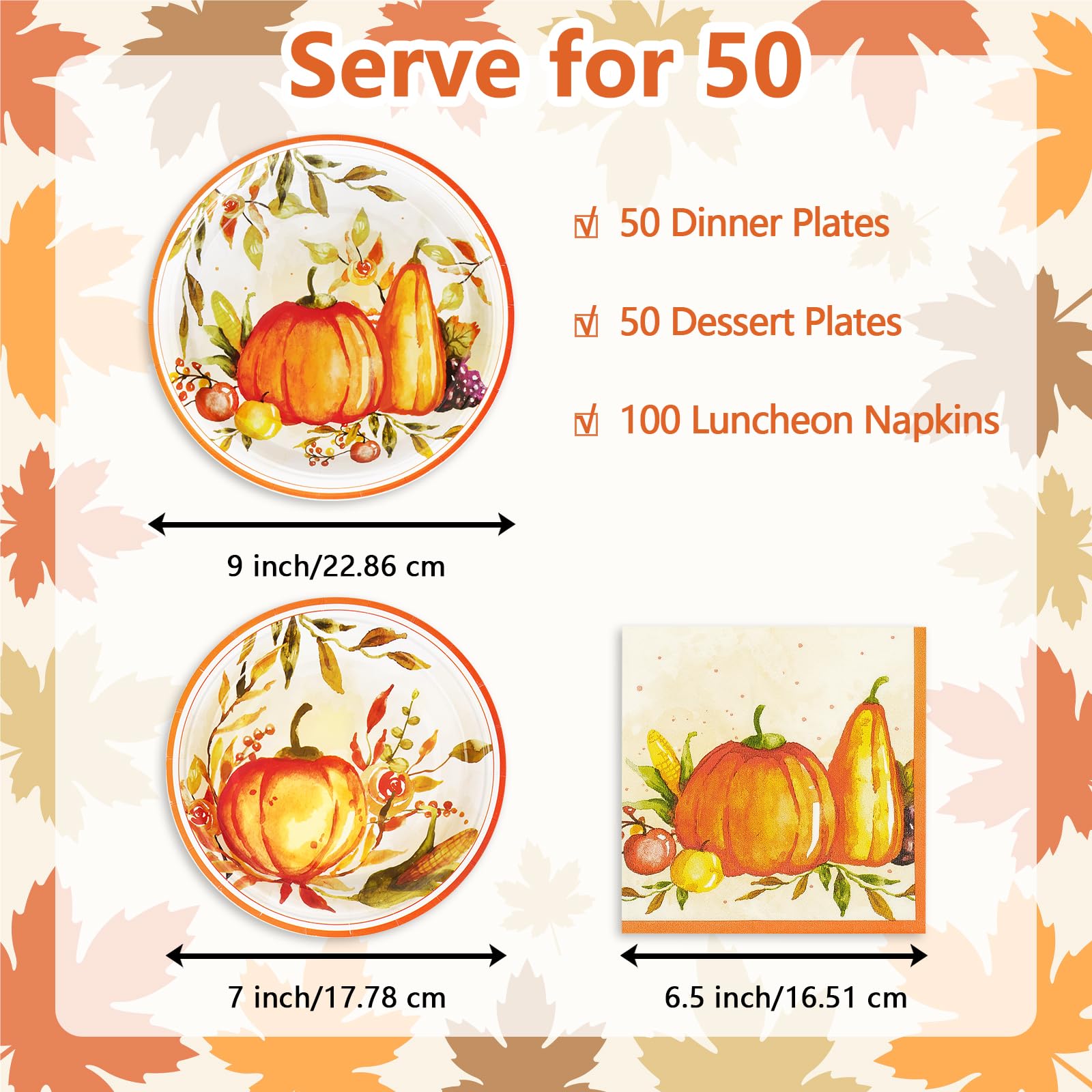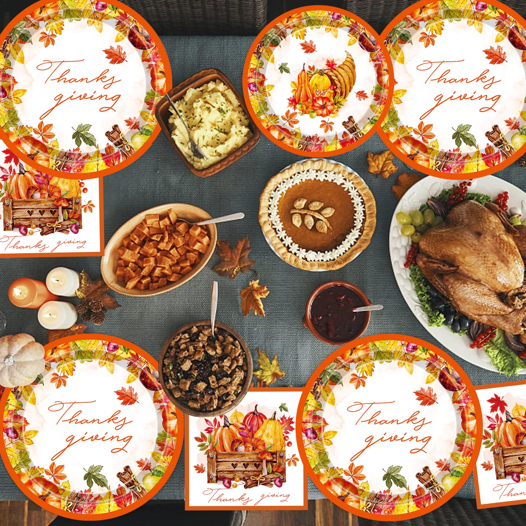 VEIZEDD Herbstteller & Servietten Set - Thanksgiving Deko In Elfenbein