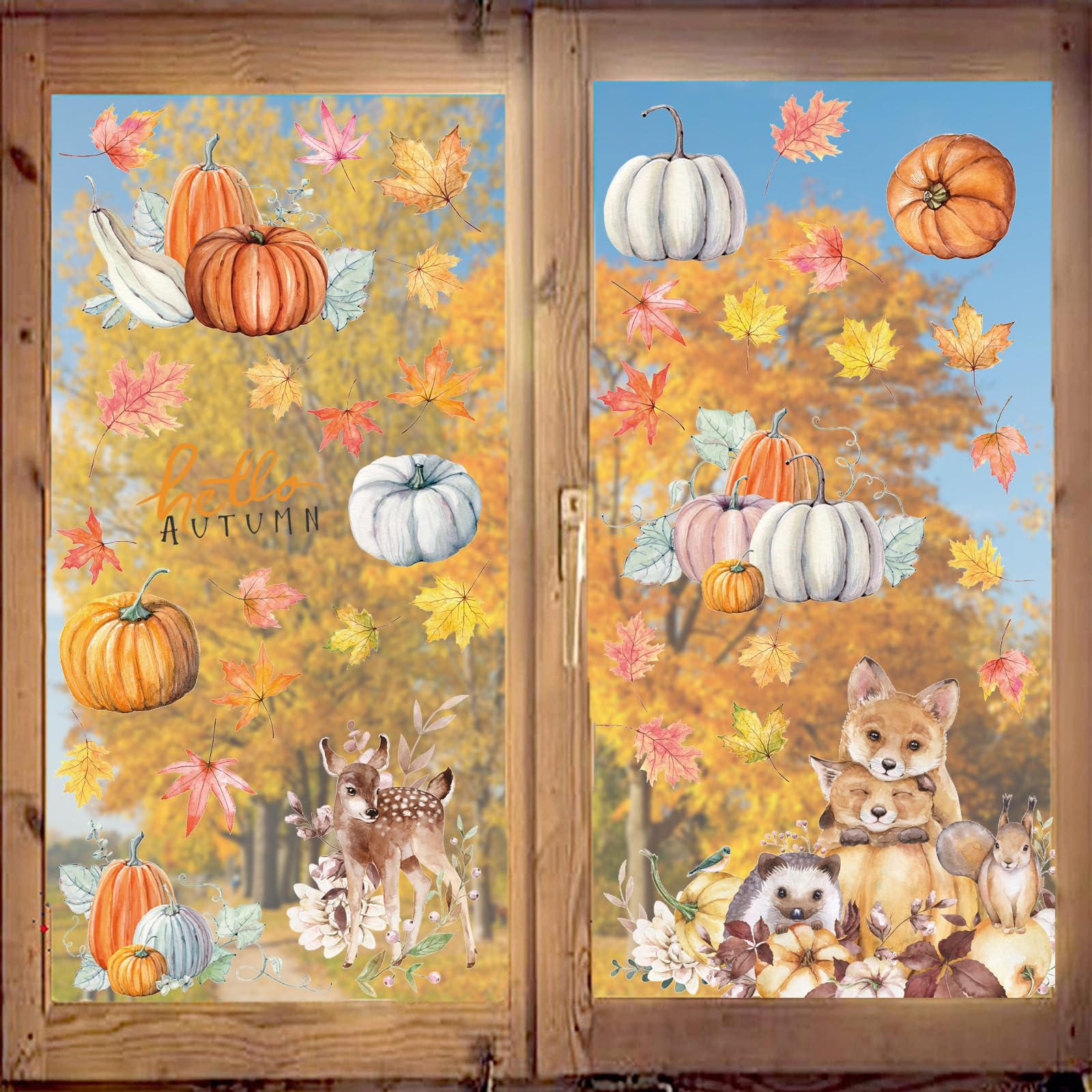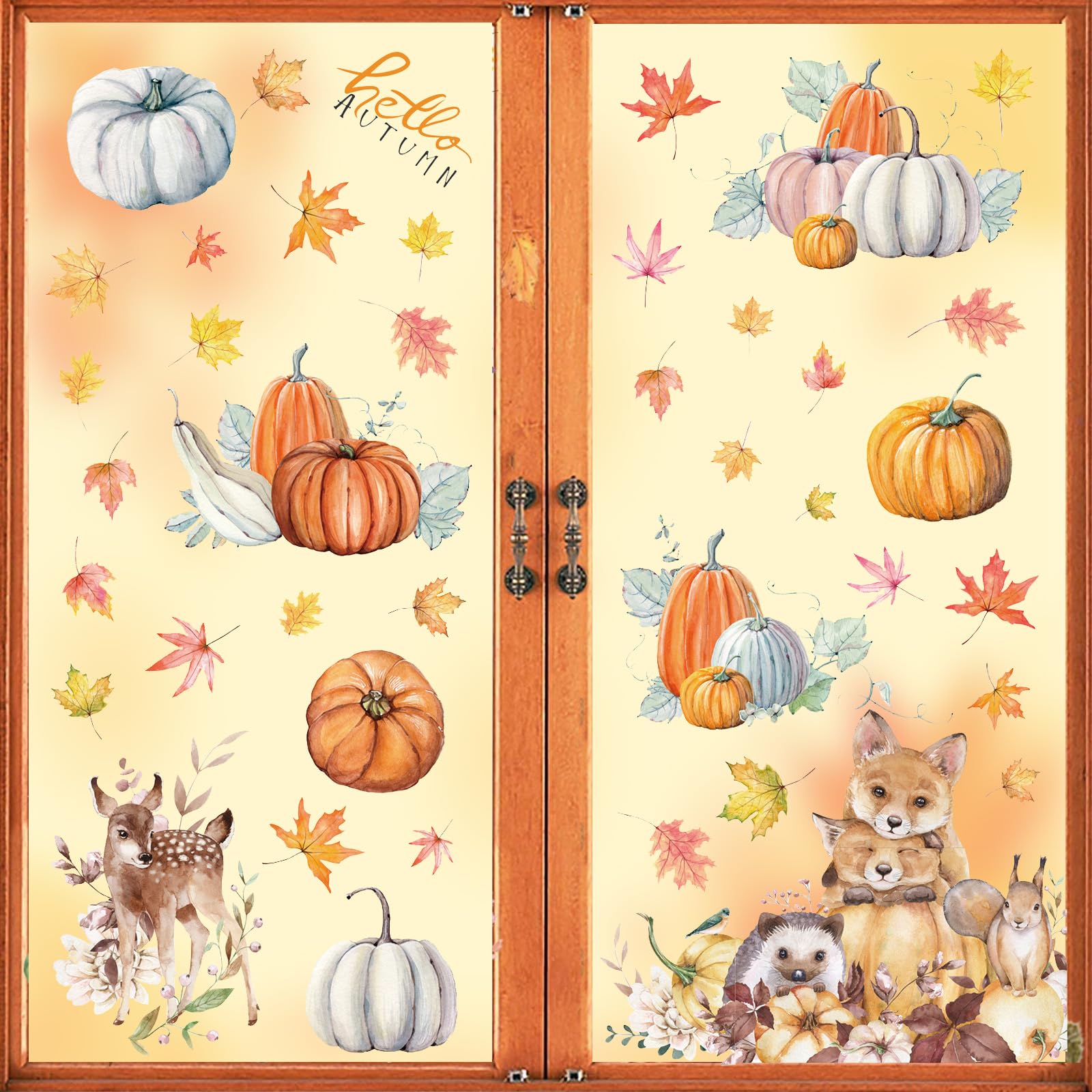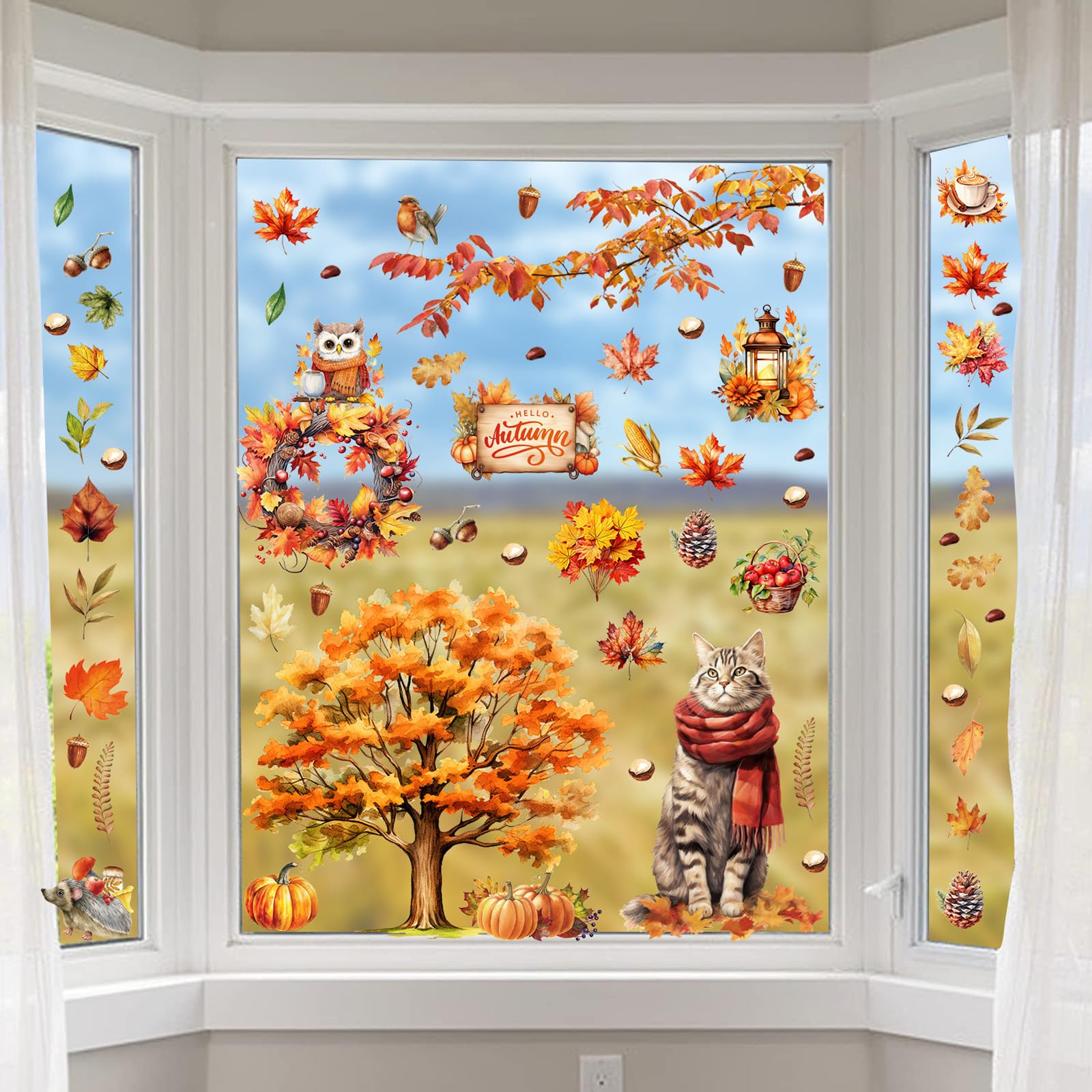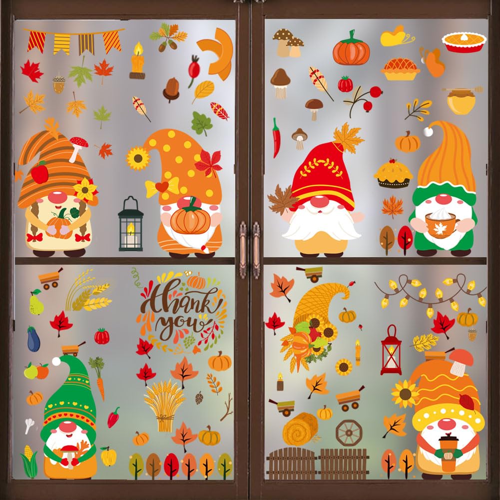 Herbst Fensteraufkleber Set - 109 Teile Thanksgiving Deko Mit Ahornblättern & Kürbissen