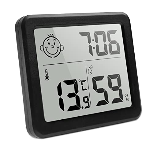 Behalte immer das perfekte Raumklima im Blick mit diesem Namvo Thermometer-Hygrometer! Das große 3,5-Zoll LCD Display ist super gut ablesbar, auch aus der Entfernung. Misst Temperaturen von -50°C bis 70°C und Luftfeuchtigkeit von 10% bis 99% RH - also für fast jede Situation geeignet. Die farbige Anzeige (rot/grün/blau) zeigt dir sofort, ob die Luft zu trocken, angenehm oder zu feucht ist. Perfekt fürs Wohnzimmer, Gewächshaus, Weinkeller, Babyzimmer oder auch für Kühlschrank und Kleiderschrank. Kann aufgestellt, an die Wand gehängt oder geklebt werden - total flexibel. Aus ABS-Material ist es leicht und robust. Ein unverzichtbarer Helfer für ein gesundes Raumklima!
