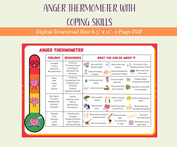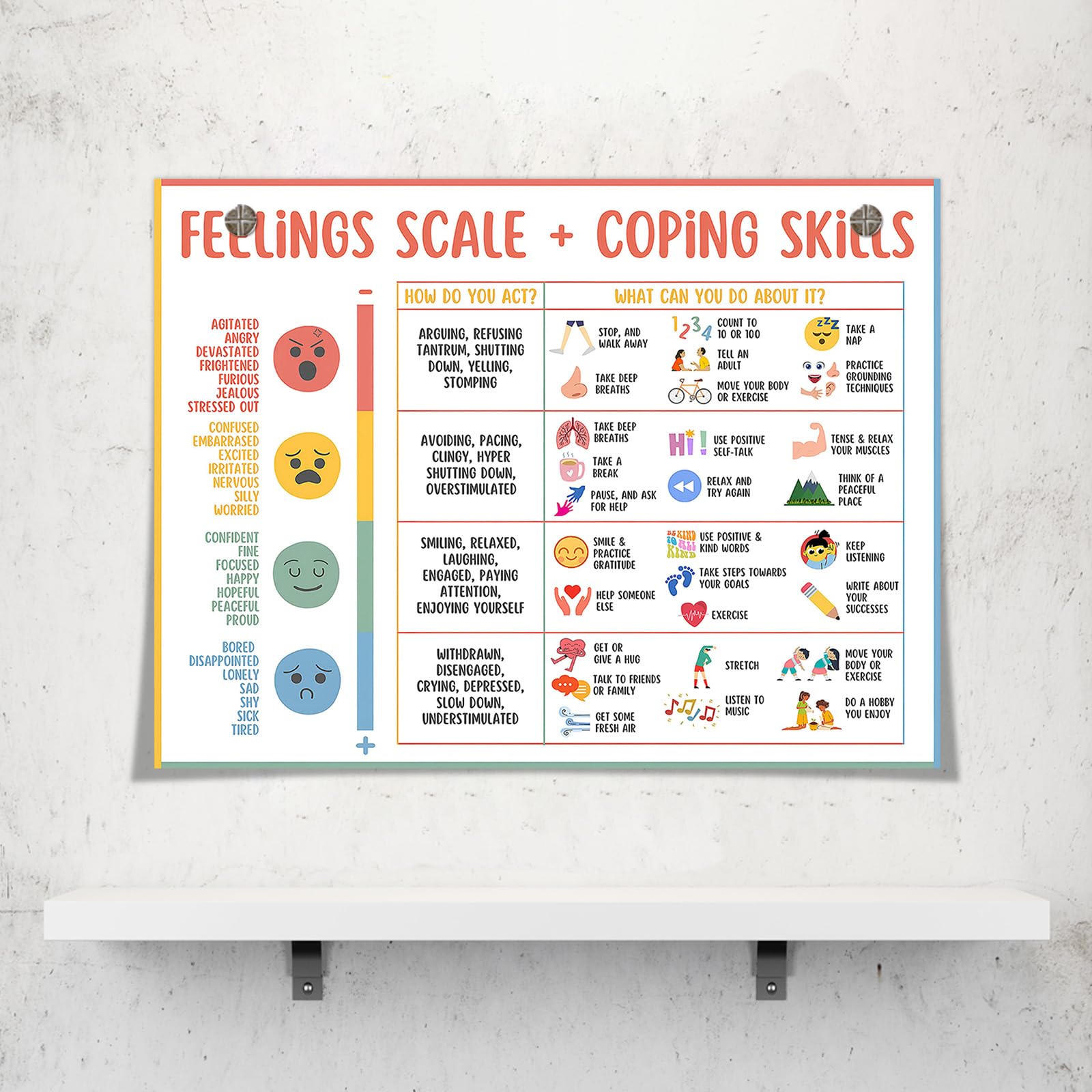Gefühle-Thermometer Poster Mit Bewältigungsstrategien - Emotionshilfe Für Kinder & Jugendliche - Psychische Gesundheit Poster Für Zimmer & Klassenzimmer
