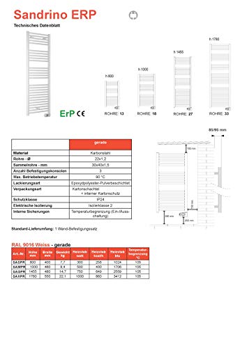 Hey, dieser elektrische Badheizkörper ist genau das, was dein Badezimmer braucht! Mit 1600x600mm Maßen und in schickem Weiß sieht er einfach klasse aus. Die 900 Watt Leistung heizen dein Bad schnell und effizient auf. Das digitale Thermostat mit Tages- und Wochenprogrammierung ist super praktisch - du kannst die Heizzeiten ganz nach deinen Bedürfnissen einstellen. Der Clou: Das Thermostat ist drehbar, also egal ob die Steckdose links oder rechts ist - es passt immer! Das Spiralkabel ist 1,5 Meter lang und gibt dir genug Spielraum für die Installation. Alle Befestigungen sind bereits im Lieferumfang enthalten. Endlich ein warmes Bad, wenn du es brauchst - ohne komplizierte Installation!