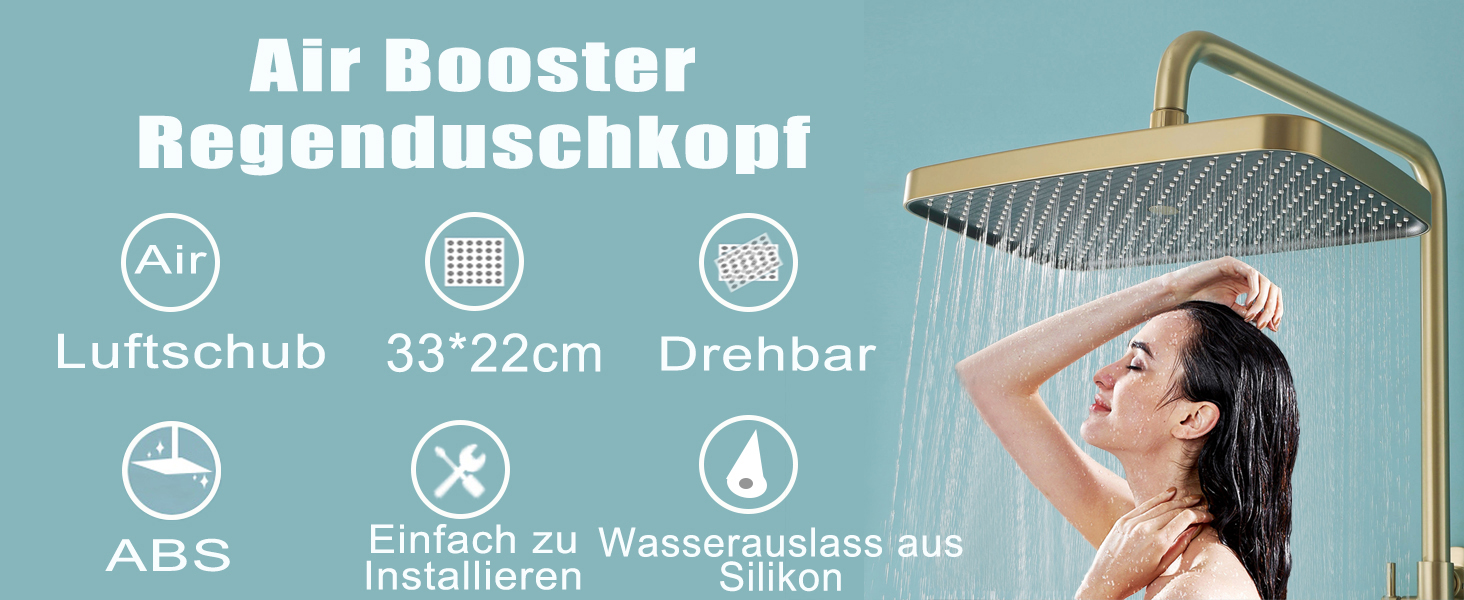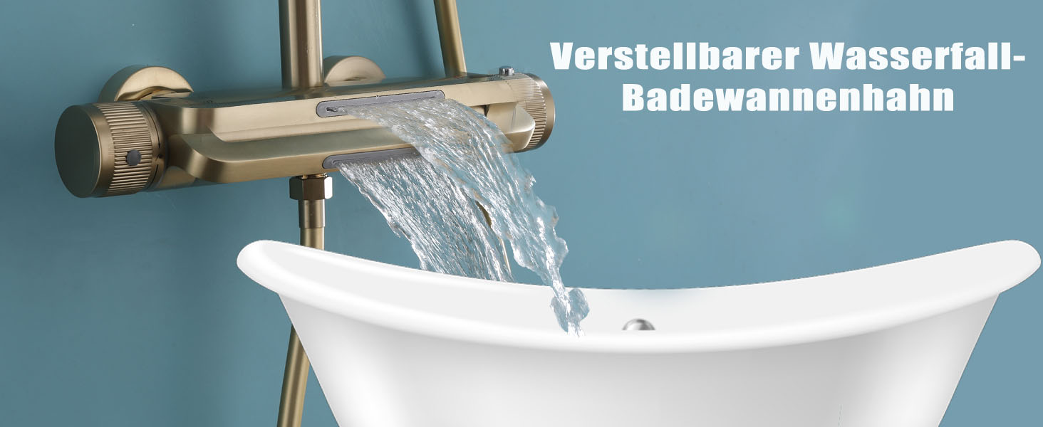 Luxus-Duschen war noch nie so sicher und komfortabel! Dieses komplette Duschsystem aus gebürstetem Gold-Messing hat alles, was du brauchst: eine große 26cm Regendusche für den entspannenden Regeneffekt, eine Handbrause mit 3 Strahlarten und ein Thermostat mit 40°C Sicherheitssperre - keine Verbrennungsgefahr mehr! Die Duschstange ist höhenverstellbar von 90-120cm, perfekt für jede Körpergröße. Besonders praktisch: Die Düsen sind kalkabweisend und mit einem Tuch leicht zu reinigen. Die Handbrause spart bis zu 30% Wasser ohne Komfortverlust. Alles aus hochwertigem Messing und ABS-Material, rostfrei und langlebig. Einfache Installation und 24/7 Kundenservice. Verwandele dein Badezimmer in eine Wellness-Oase - dieses Set macht's möglich! Perfekt für die ganze Familie und jeden Dusch-Typ.