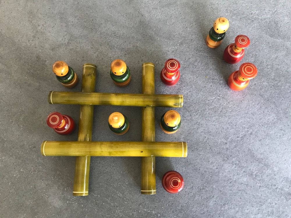 Wie cool ist das denn? Riesen Tic Tac Toe für den Garten! Dieses übergroße Spiel bringt Spaß für die ganze Familie - drinnen und draußen.\n\nDie Spielmatte misst satte 90 x 90 cm und ist aus robustem Kunststoff. Das bedeutet:\n• Perfekt für den Einsatz im Garten\n• Leicht zu reinigen\n• Wetterbeständig\n• Rutschfest\n\nIm Lieferumfang ist alles dabei, was du brauchst:\n• 5 Kreuze\n• 5 Kreise\n• Spielmatte\n• Anleitung\n\nDas Spiel ist bekannt für 2 Spieler und super einfach zu lernen. Egal ob Kindergeburtstag, Gartenparty oder einfach nur ein gemütlicher Nachmittag im Freien - dieses Spiel kommt immer gut an!\n\nIch hab's meinen Neffen zum Geburtstag geschenkt und sie spielen ständig damit. Die großen Spielsteine liegen gut in Kinderhänden und die Matte ist robust genug, dass auch mal wilder gespielt werden kann.\n\nWas ich besonders gut finde: Man kann es auch drinnen spielen. An regnerischen Tagen einfach die Matte im Wohnzimmer ausbreiten und schon hat man Spaß ohne Ende.\n\nDie Qualität ist übrigens echt gut. Der Kunststoff fühlt sich wertig an und die Spielsteine sind schön groß und griffig.\n\nWenn du also nach einem Spiel suchst, das:\n• Kinder und Erwachsene gleichermaßen begeistert\n• Drinnen und draußen funktioniert\n• Einfach zu verstehen ist\n• Langlebig und robust ist\n\n...dann ist dieses Riesen Tic Tac Toe genau das Richtige. Einfach bestellen und losspielen!