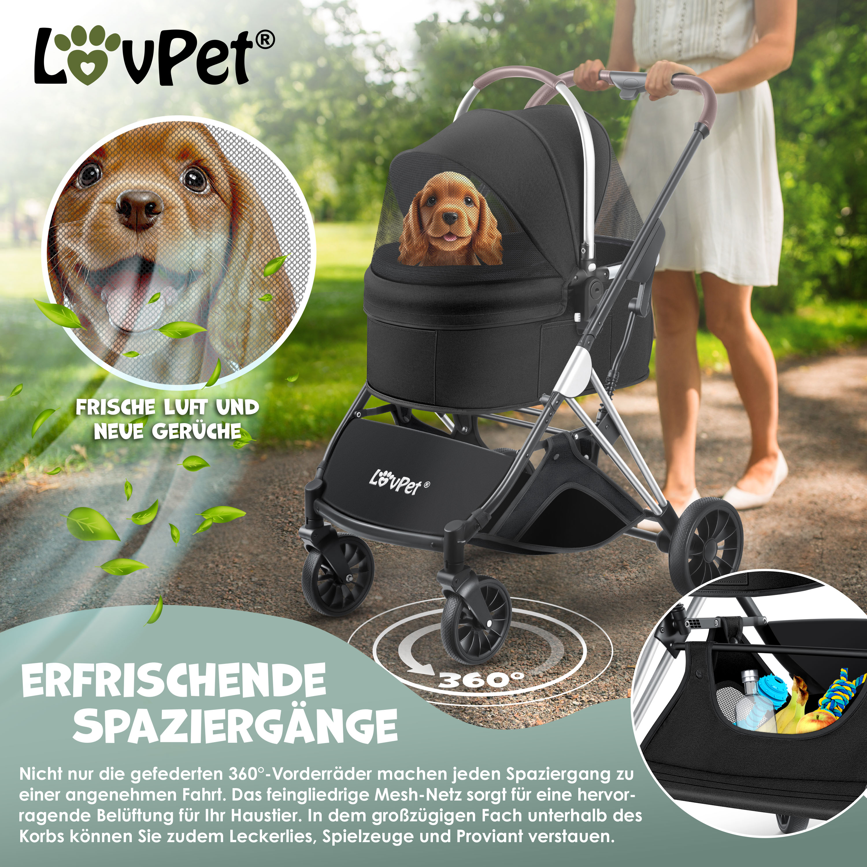 Perfekt für zwei Vierbeiner! Dieser Hundewagen hat zwei separate Transportboxen - ideal für zwei Hunde oder Katzen. Jede Box hält bis zu 22 kg aus - auch für größere Tiere geeignet. Maximal 60 cm Länge pro Tier - viel Platz zum Liegen und Entspannen. Faltbares Design - super praktisch für unterwegs und platzsparend in der Aufbewahrung. Mit robusten Rädern die sich 360° drehen - läuft super leicht auch auf unebenen Wegen. Stoßdämpfende Federn - deine Tiere haben eine ruhige Fahrt. Mit Netzfenstern für frische Luft und Regenschutz für schlechtes Wetter. Perfekt für Spaziergänge, Einkaufen oder Reisen. Deine Tiere reisen bequem und sicher - und du hast die Hände frei!