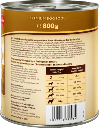 Dein Hund liebt Abwechslung und hochwertiges Futter? Dann ist dieses Tierliebhaber Nassfutter mit Rind und Gemüse genau das Richtige! Mit satten 91% Rindfleisch und Innereien bietet es eine natürliche, proteinreiche Ernährung ganz ohne künstliche Zusätze oder Füllstoffe. Entwickelt von Tierärzten und Ernährungsexperten, ist dieses Futter besonders bekömmlich und ideal für ernährungssensible Hunde oder als Ergänzung zur BARF-Fütterung. Aber das ist noch nicht alles: Die weiche Textur wirkt wie ein natürlicher Zahnpflege-Kausnack und unterstützt so die Maulhygiene deines Lieblings. Ohne Getreide, Zucker oder künstliche Konservierungsstoffe - nur das Beste für deinen Vierbeiner! Die praktischen 800g-Dosen sind ideal für mittelgroße Hunde oder in Kombination mit Trockenfutter. Mit diesem Futter tust du nicht nur etwas für die Gesundheit deines Hundes, sondern bereitest ihm auch jeden Tag aufs Neue eine kulinarische Freude. Probier's aus - dein Hund wird's dir danken!
