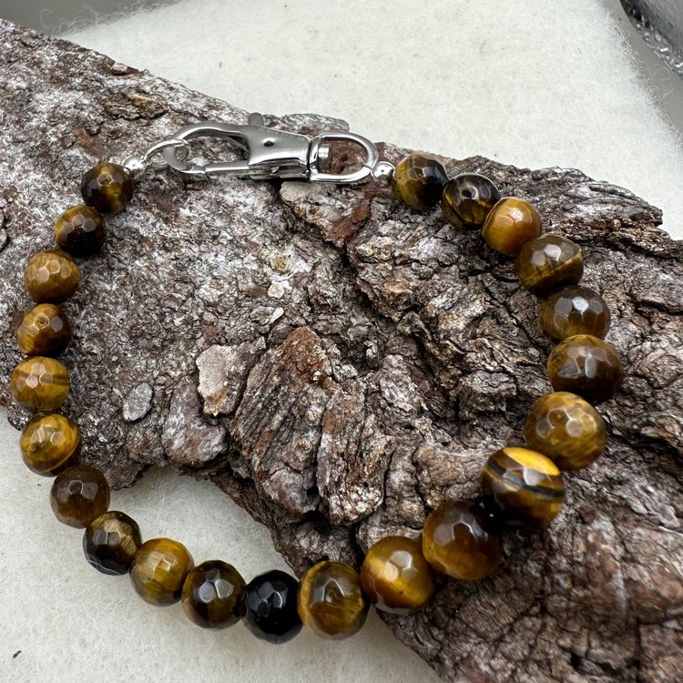 PiercingJak Herren Armband Mit Tigerauge - Naturstein Edelstahl Kette 6mm Für Männer