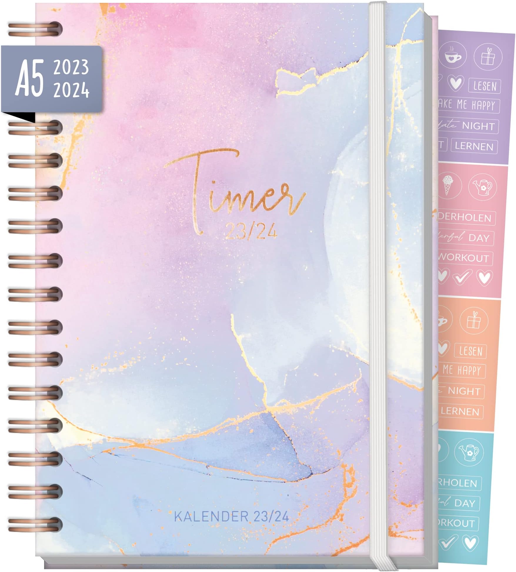 Mit Lesebändchen findest du schnell die aktuelle Woche, und die stabile Fadenbindung hält auch bei täglichem Gebrauch super durch.
