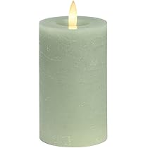 Gemütliche Stimmung ohne Brandgefahr! Unsere LED Kerze aus echtem Wachs sieht aus wie eine echte Kerze, ist aber viel sicherer. Der flackernde Flamme-Effekt ist täuschend echt - kaum zu unterscheiden von einer normalen Wachskerze. Perfekt für Familien mit Kindern oder Haustieren, denn es gibt keine Rauchentwicklung und keine Brandgefahr.\\n\\nDie Kerze hat einen praktischen 6-Stunden-Timer: Einmal aktiviert und sie geht täglich zur gleichen Zeit an und nach 6 Stunden wieder aus. Super für gemütliche Abende oder als festliche Dekoration. Ob als Weihnachtskerze, für die Hochzeitsdeko oder einfach so fürs Wohnzimmer - die warmweiße Beleuchtung schafft sofort Atmosphäre.\\n\\nMit 7x19 cm ist die Stumpenkerze in Grün ein echter Hingucker. Sie läuft mit 2 AAA-Batterien (nicht im Lieferumfang) und hat eine Betriebszeit von ca. 250 Stunden. Für den Innenbereich geeignet und mit CE- sowie UKCA-Zeichen zertifiziert. Rustikales Design, das zu jedem Einrichtungsstil passt. Ob auf dem Kaminsims, dem Esstisch oder als Teil deiner festlichen Deko - diese Kerze bringt Gemütlichkeit in dein Zuhause!
