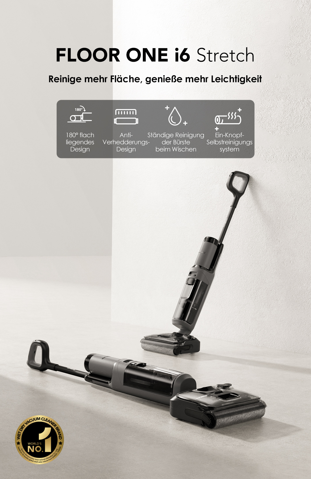 Tineco Floor ONE I6 Stretch Nass-Trockensauger - 180° Lay-Flat Mit 85°C Heißluft