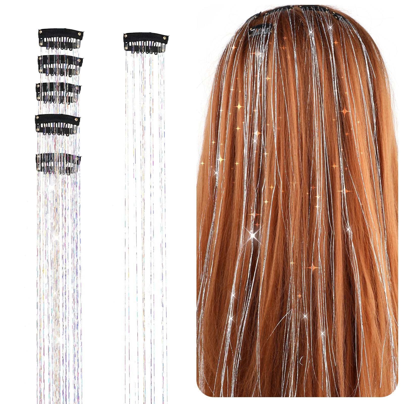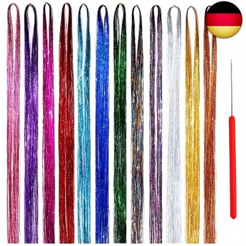 ZORVYN Hair Tinsel 12 Stück - Glitzer Haarsträhnen Mit Metallclips