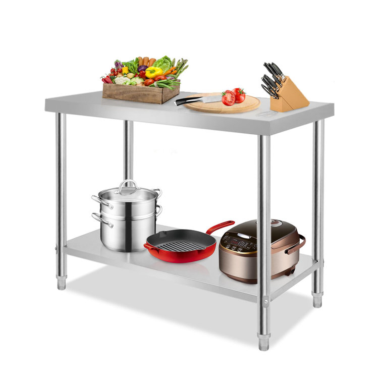 Profiqualität für deine Küche! Dieser massive Edelstahl-Arbeitstisch von Royal Catering ist ein echter Alleskönner. Mit 100x60cm Arbeitsfläche und praktischer Ablage darunter. Die 12cm hohe Aufkantung schützt vor Spritzwasser und Schmutz. Belastbar bis zu stolzen 400kg - da kann nichts wackeln! Aus poliertem Edelstahl, absolut hygienisch und pflegeleicht. Die höhenverstellbaren Füße sorgen für perfekten Stand auch auf unebenen Böden. Ideal für Gastronomie, Metzgereien, Bäckereien oder große Privatküchen. Korrosionsbeständig und extrem langlebig. Einfach zu reinigen - einfach abwischen und fertig. Macht jede Küchenarbeit einfacher und professioneller. Ein Investment, das sich jahrelang bezahlt macht. Einfach aufbauen und sofort loslegen!