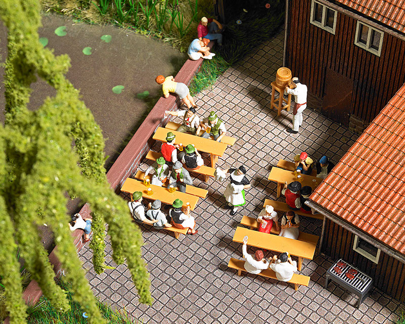 Prost! 🍻 Diese detailreiche Bierzeltgarnitur von Busch bringt bayrisches Flair in deine Modellbahn-Landschaft! Im Maßstab H0 (1:87) perfekt für jede Modelleisenbahn-Anlage. Das Set enthält authentische Biertische mit Bänken und einem Grill - alles, was für ein gemütliches Biergarten-Ambiente fehlt. Die feine Ausarbeitung macht jeden Tisch zum kleinen Kunstwerk. Einfach in die Landschaft stellen und schon fühlt man sich wie auf dem Oktoberfest! Achtung: Enthält Kleinteile - nicht für Kinder unter 3 Jahren geeignet. Ob für den heimischen Hobbykeller oder die Ausstellungsanlage - diese Garnitur sorgt für urige Atmosphäre. Ein Muss für jeden Modellbahn-Fan, der seine Anlage mit lebendigen Szenen zum Leben erwecken will! 🚂