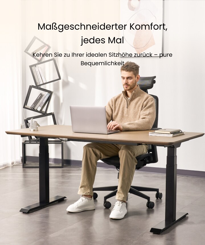 Schluss mit Rückenschmerzen vom langen Sitzen! Dieses höhenverstellbare Tischgestell von FLEXISPOT bringt Bewegung in deinen Arbeitsalltag. \n\nStufenlos verstellbar zwischen 60-125 cm - perfekt für die ganze Familie. Mit starken Doppelmotoren die den Tisch schnell und leise heben (bis 25 mm/s). Die Handsteuerung hat sogar einen USB-Ladeanschluss!\n\n4 Memory-Positionen speichern deine Lieblingshöhen - mit einem Knopfdruck ist der Tisch genau richtig eingestellt. Das Anti-Kollisions-System stoppt automatisch wenn etwas im Weg ist - sicher für Kinder und Haustiere.\n\nPasst auf Tische von 120-180 cm Länge, 60-80 cm Breite und trägt bis zu 100 kg. Mit 5 Jahren Rahmengarantie und 3 Jahren Motorgarantie. Investiere in deine Gesundheit - dein Rücken wird es dir danken!