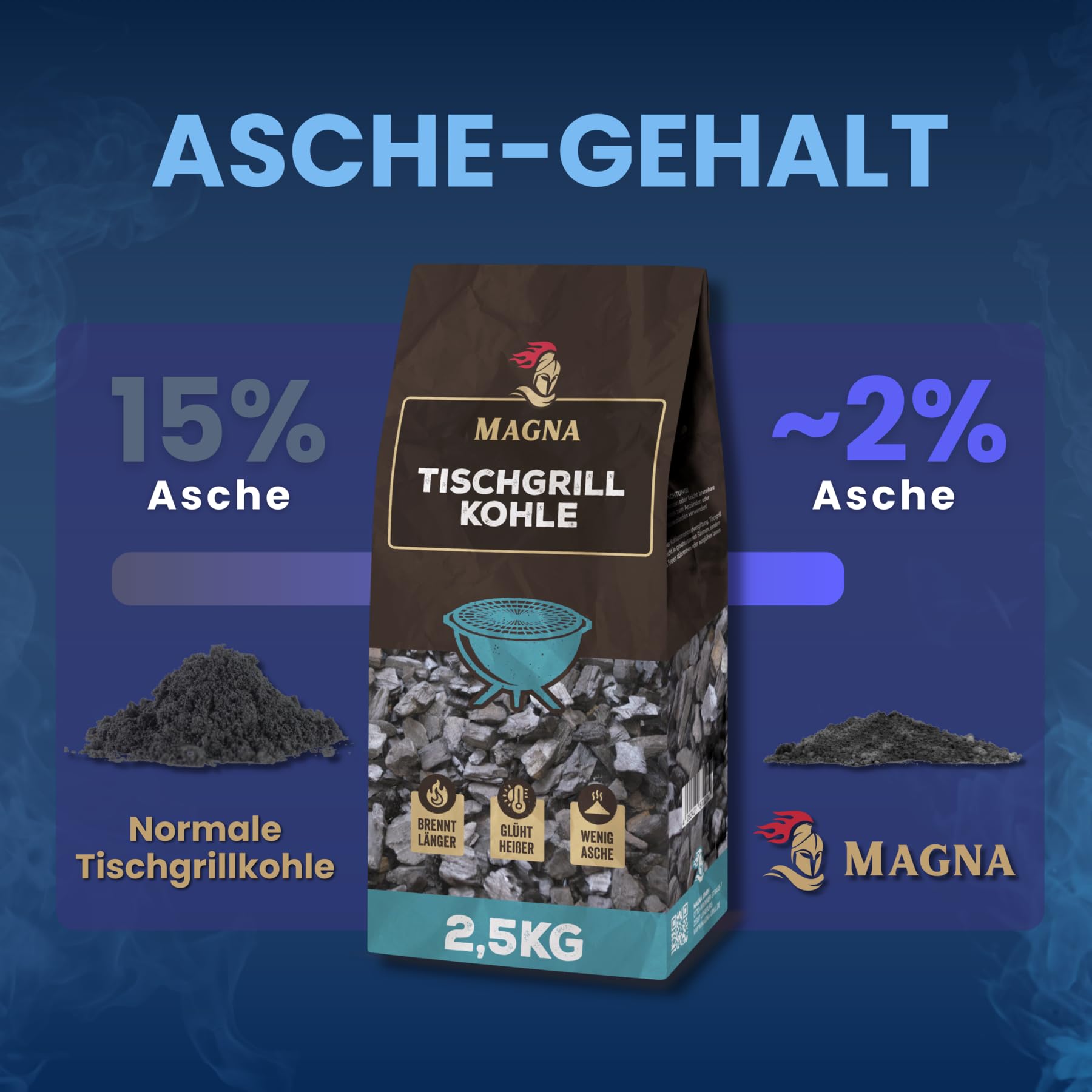 Magna Premium Tischgrillkohle 2,5kg - Buchenholzkohle Für Rauchfreies Grillen