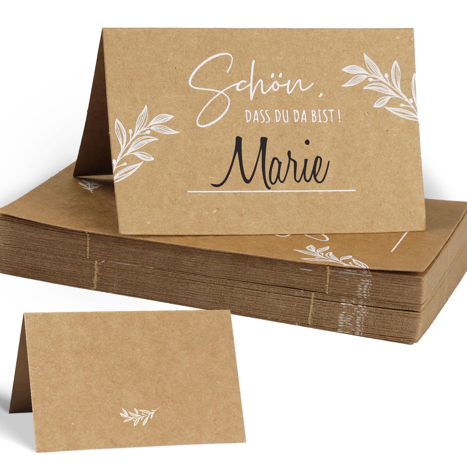 Perfekte Organisation für deine Feier! 50 elegante Tischkarten im floralen Design, 11x8,5 cm groß (gefaltet 5,5x8,5 cm). Aus stabilem 300g/m² Papier, beidseitig bedruckt. Einfach mit Namen beschriften - wir empfehlen Fettstifte. Ideal für Hochzeiten, Geburtstage, Taufen oder Firmungen. Schaffen eine persönliche Atmosphäre und sorgen für Ordnung. Vorgefaltet für einfache Handhabung. Sieht total professionell aus, ohne viel Aufwand. Mach deine Feier unvergesslich mit diesen schönen Karten!