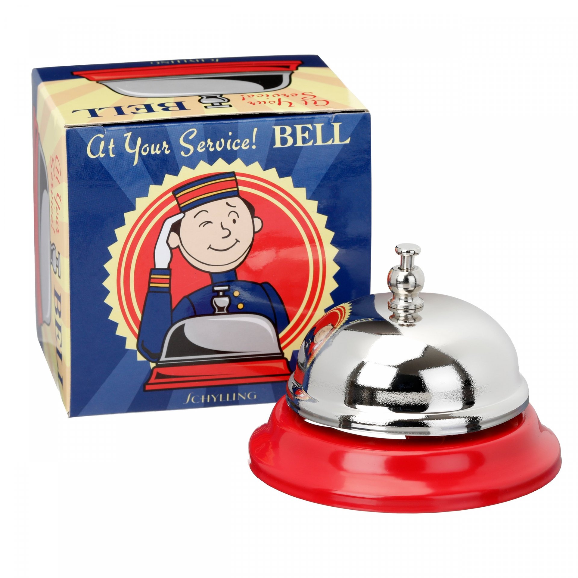 Klingeling! Mit dieser stylischen Tischklingel machst du auf dich aufmerksam – und das auf echt coole Art. 🔔\n\nDie Klingel ist aus poliertem Aluminium und glänzt schick in Silber. Mit 9 x 8 cm ist sie kompakt, aber laut genug, um gehört zu werden.\n\nPerfekt für die Rezeption im Hotel, für die Theke in der Bar oder einfach für zu Hause. Wenn das Essen fertig ist, einfach klingeln – und alle kommen angerannt!\n\nDie Klingel ist nicht nur praktisch, sondern sieht auch noch dekorativ aus. Sie passt super auf jeden Tisch und gibt ihm sofort einen vintage-chic Touch.\n\nEin lustiges Gadget für Partys, ein nützliches Tool fürs Büro oder ein retro Accessoire für deine Einrichtung – diese Klingel kann alles. Einfach draufdrücken und genießen!