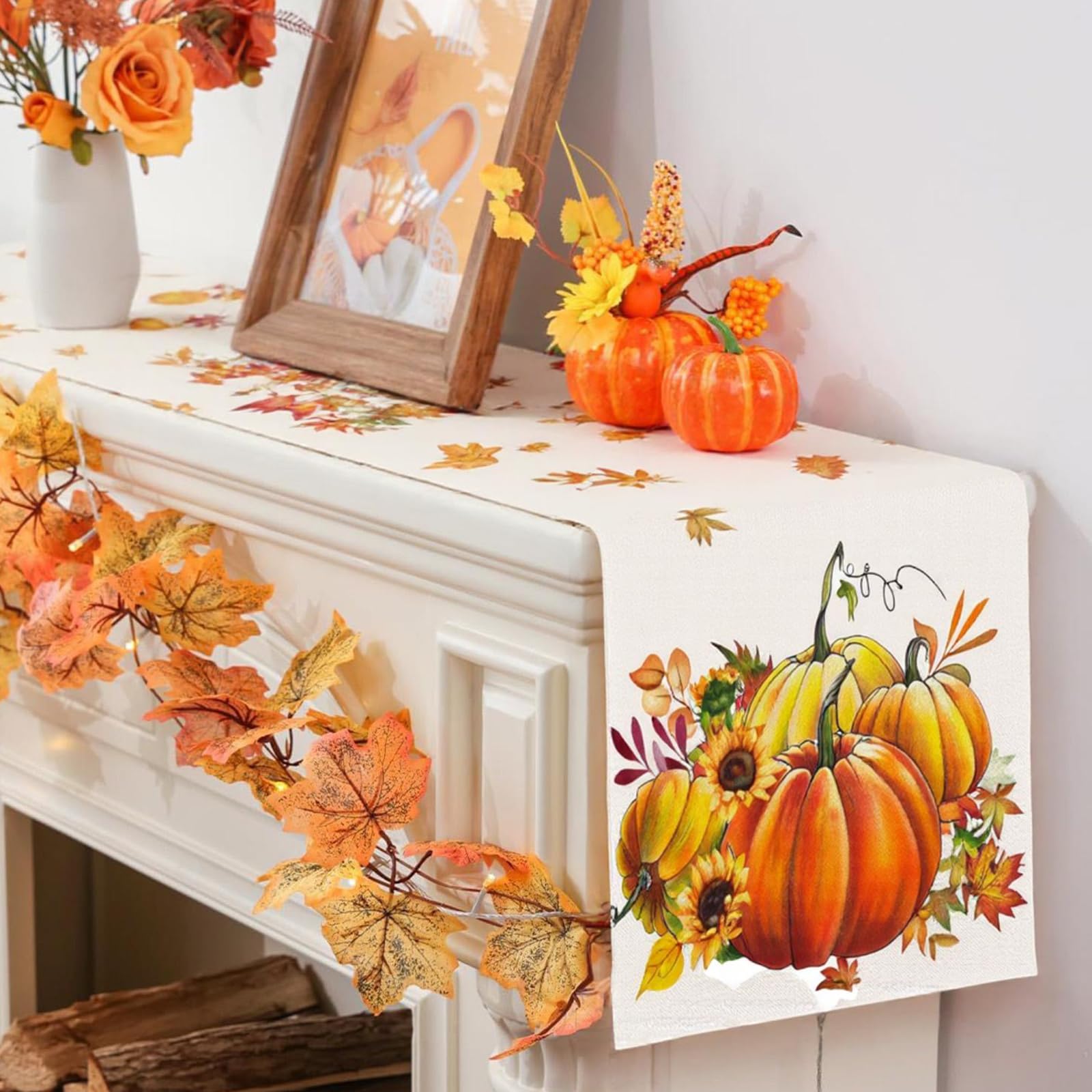 Herbst Tischläufer 183x33cm - Kürbisse & Ahornblatt Design Leinenoptik