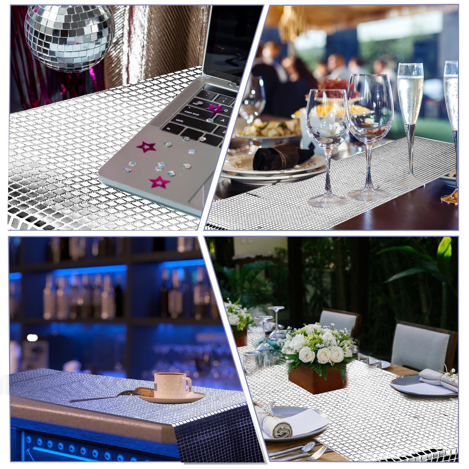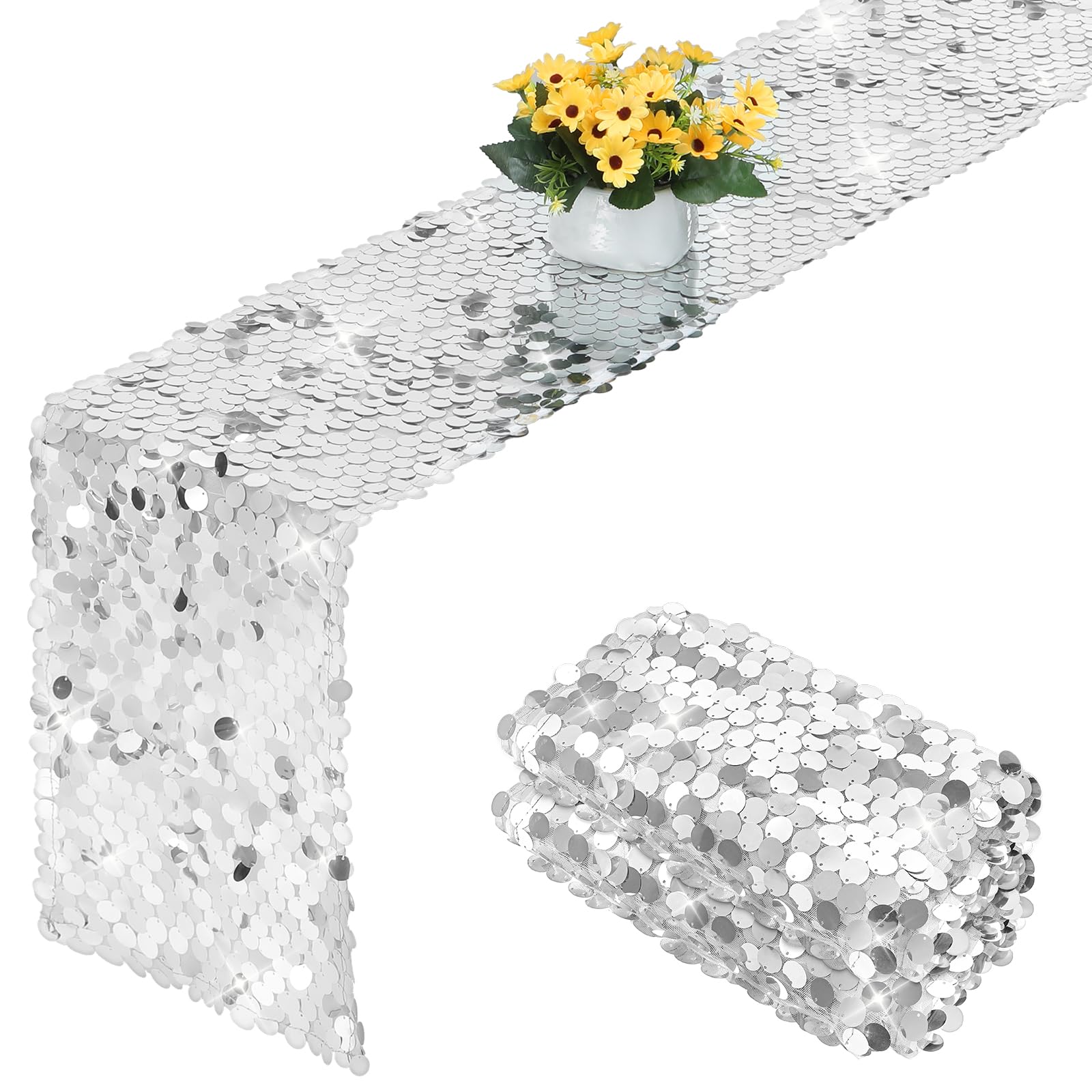 Mach deine Party zum absoluten Highlight! Dieser funkelnde Disco-Tischläufer mit glänzenden Pailletten bringt 70er Jahre Flair in deine Feier. Mit 275cm Länge und 30cm Breite deckst du problemlos lange Tische ab und schaffst eine einheitliche, stylische Dekoration. Die silbernen Pailletten reflektieren das Licht in allen Regenbogenfarben und sorgen für eine magische Atmosphäre. Perfekt für Disco-Partys, 70er/80er Jahre Themen, Neon Nights, Geburtstage, Hochzeiten oder Junggesellenabschiede. Aus hochwertigem Polyester und strapazierfähigen Pailletten - auch nach mehrfachem Gebrauch sieht dieser Tischläufer noch wie neu aus. Einfach ausrollen und sofort ist die Party-Stimmung da! Kombiniere ihn mit Neon-Lichtern, Discokugeln und passender Musik - und deine Gäste werden begeistert sein. Dieser Tischläufer verwandelt jeden Raum in eine Tanzfläche und macht deine Feier zu einem unvergesslichen Erlebnis. Let's dance!