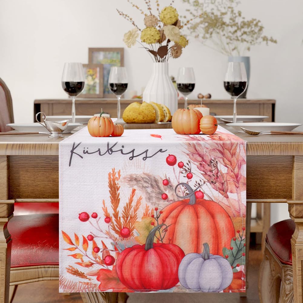 Artoid Mode Herbst Tischläufer - Kürbisse Blumen Blätter Design 40x180 Cm
