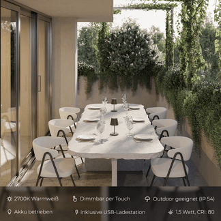 NEONA AVA LED Tischleuchte Kabellos - IP54 Wetterfest Mit Touch-Dimmung & Ladestation