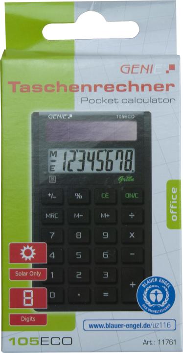 Boah, dieser Genie 305 ECO Tischrechner ist nicht nur praktisch, sondern auch noch umweltfreundlich! Mit 12-stelligem Display und 100% Solarbetrieb brauchst du nie wieder Batterien wechseln. Das angewinkelte Display ist super gut ablesbar und die Tasten liegen perfekt in der Hand. Hergestellt aus über 70% recyceltem Material und mit dem Blauen Engel ausgezeichnet - da kannst du mit gutem Gewissen rechnen! Mit 17,5x11,2x3 cm ist er kompakt und passt in jedes Büro oder auf den heimischen Schreibtisch. Funktionen wie Prozentrechnung, 3-Tasten-Speicher, Gewinnspannenberechnung und Grand Total machen ihn zum perfekten Helfer für Schule, Büro und Zuhause. Nur 118 Gramm leicht ist er auch super für unterwegs. Die Plastiktasten sind leicht zu reinigen und die Qualität ist typisch Genie - einfach unkaputtbar! Ob für Rechnungen, Kalkulationen oder Hausaufgaben - dieser Rechner ist immer dabei!