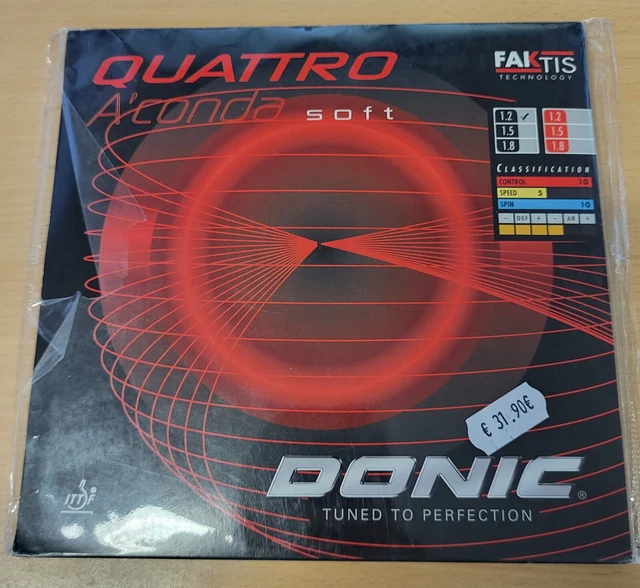 Spielst du gern mit Kontrolle und trotzdem mit Effet? Dann ist der DONIC Quattro Belag genau dein Ding! Mit 1,5 mm Stärke in Schwarz - ein weicher Schwamm kombiniert mit weichem Obergummi für sensationelles Ballgefühl. Tempo: 93, Kontrolle: 98, Effet: 98 - das sagt alles! Perfekt für Allround-Spieler, die Wert auf natürliche Ballführung legen. Entwickelt erstaunliche Dynamik bei Spin-, Konter- und Blockbällen. Noppen-innen-Belag mit weicher Schwammhärte. Ob Training oder Match - mit diesem Belag machst du garantiert mehr Punkte. Hol dir den Belag, der versteht was du willst!