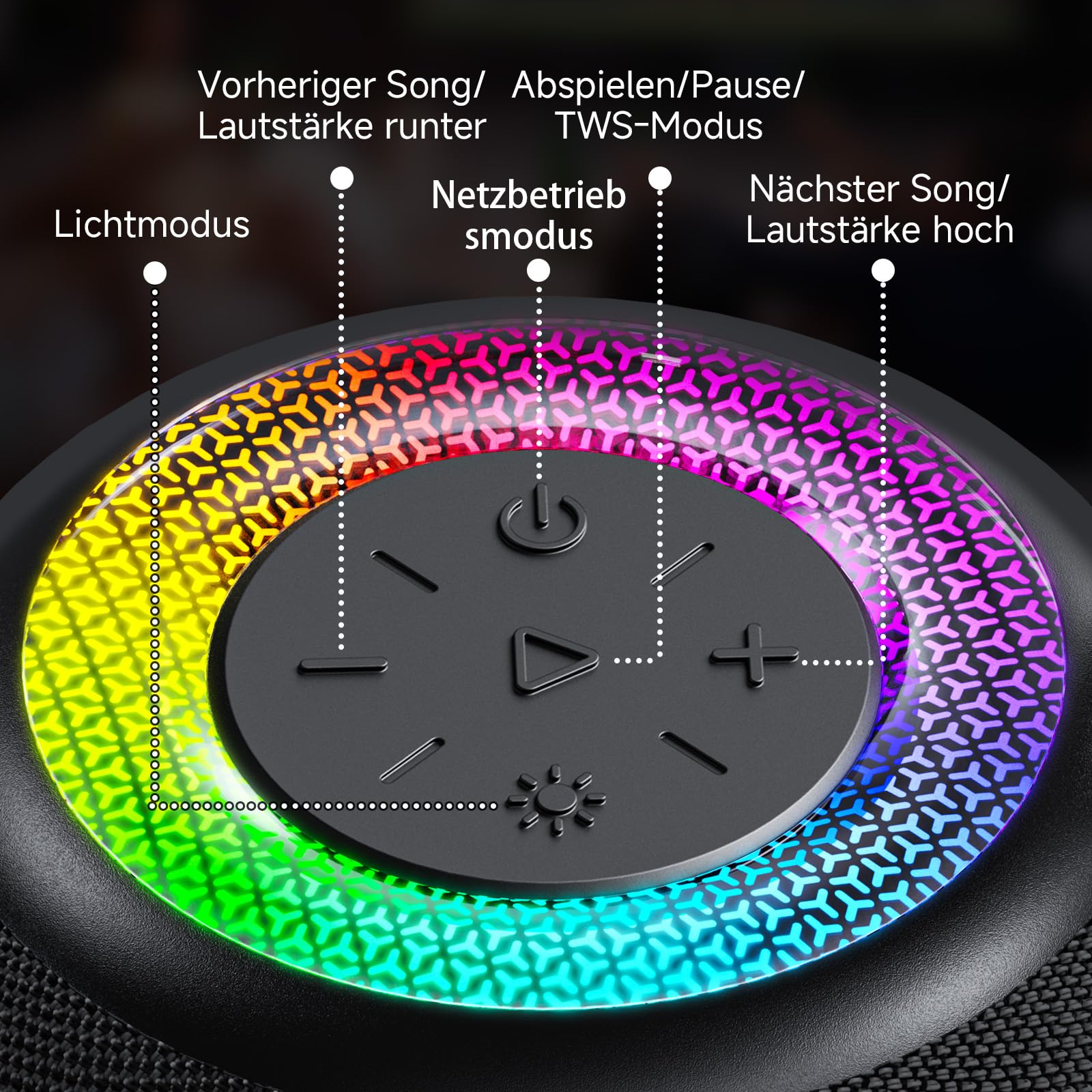 Tisco Mini Bluetooth Lautsprecher - 24h Spielzeit, RGB-Licht, Wasserdicht