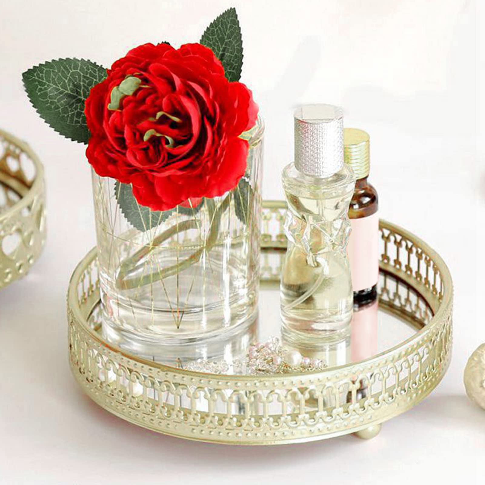 Ordnung muss nicht langweilig sein! Dieses wunderschöne Vintage-Spiegeltablett in Gold bringt Stil auf deinen Schminktisch oder Nachttisch. Mit dem verspiegelten Boden und dem weichen Samt schützt es deine wertvollen Stücke vor Kratzern. Perfekt für Ohrringe, Ringe, Armbänder oder deine Lieblingskosmetik. Das elegante Design passt super ins Badezimmer, Schlafzimmer oder Wohnzimmer und ist ein echter Hingucker. Ob als praktischer Organizer oder dekoratives Accessoire - dieses Tablett macht einfach überall eine gute Figur. Ein tolles Geschenk für Geburtstage, Weihnachten oder den Einzug in eine neue Wohnung. Stilvoll, praktisch und einfach schön!