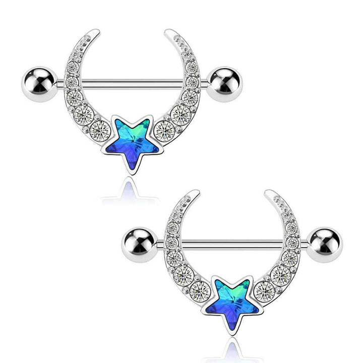 OUFER Nippel Piercing Bars Titan - 14G Nippel Schmuck Mit Aqua CZ Stein