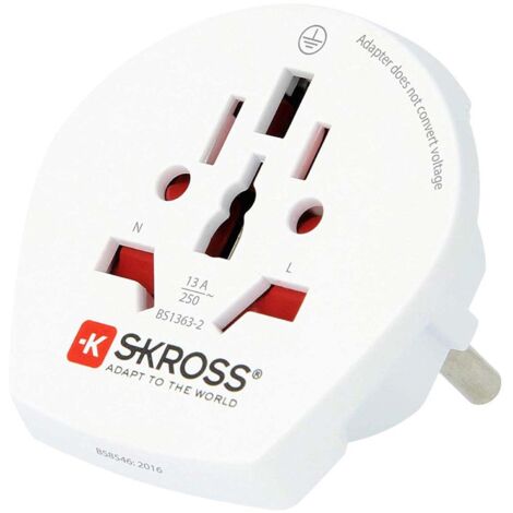 Perfekt vorbereitet auf jede Reise! Der SKROSS Adapter wandelt Stecker aus über 150 Ländern in UK-Stecker (BS) um. Swiss Design - da steckt Qualität drin! Funktioniert mit 2- und 3-poligen Steckern, auch leistungsstarke Geräte wie Laptops und Reiseföhne sind kein Problem. Kompakt, sicher und zuverlässig - genau das, was man von SKROSS erwartet. Ideal für Hotels, Geschäftsreisende oder Urlaub in Großbritannien. Einfach einstecken und los geht's - weltweit connected!
