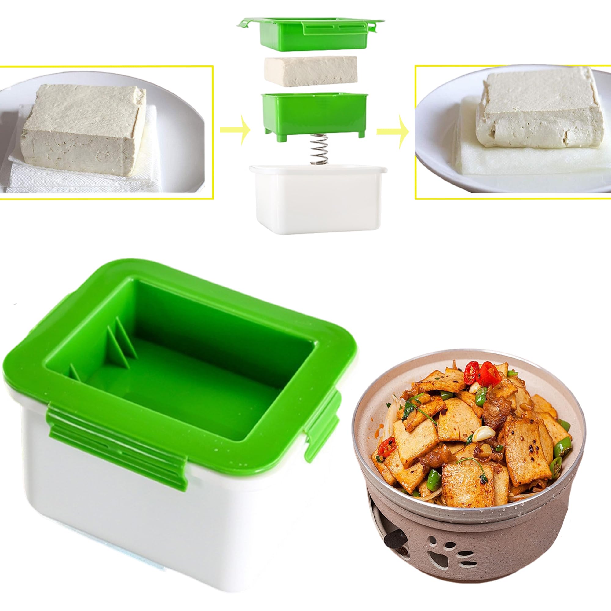 Tofu Presser 3-in-1 - Edelstahl Tofupresse Zum Entwässern Ohne Beschädigung