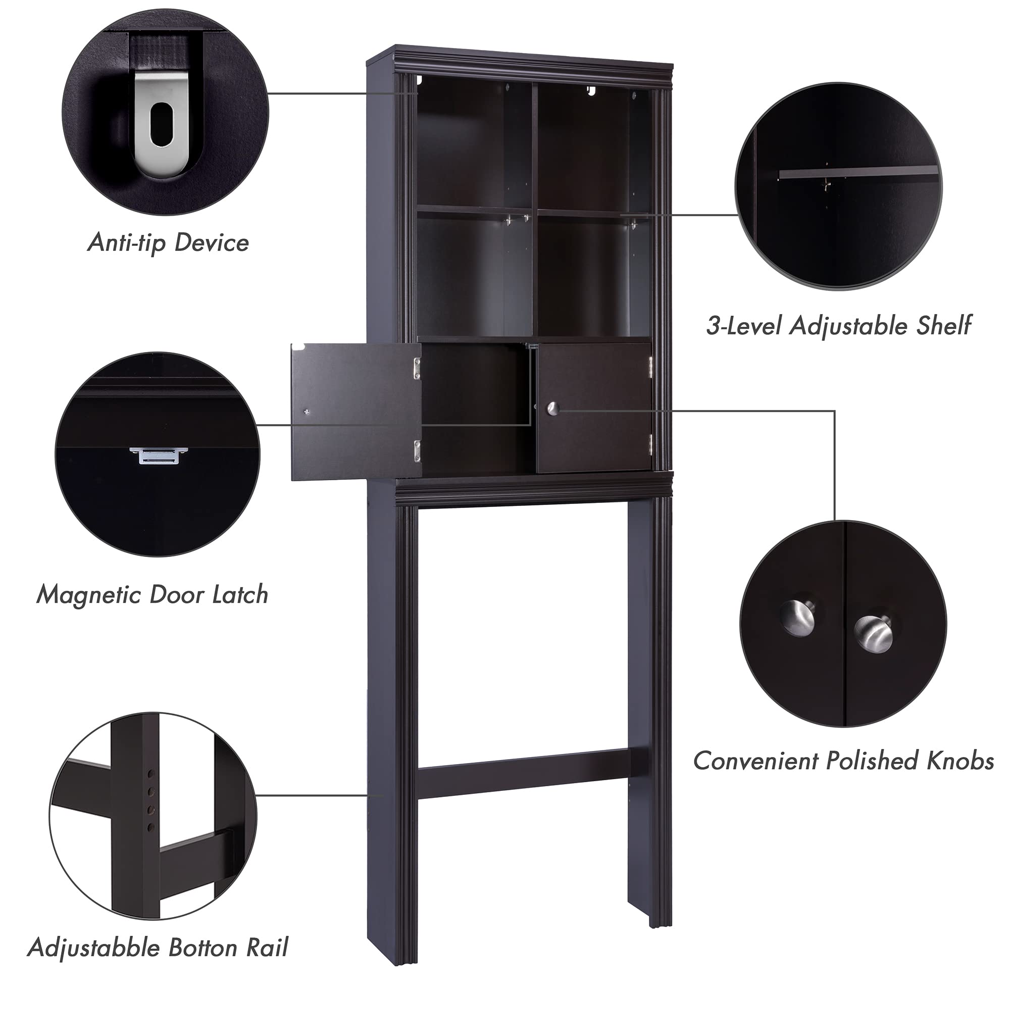 Mit 69x30 cm Grundfläche passt es perfekt neben die Toilette. Mehrere Ebenen für optimale Organisation.