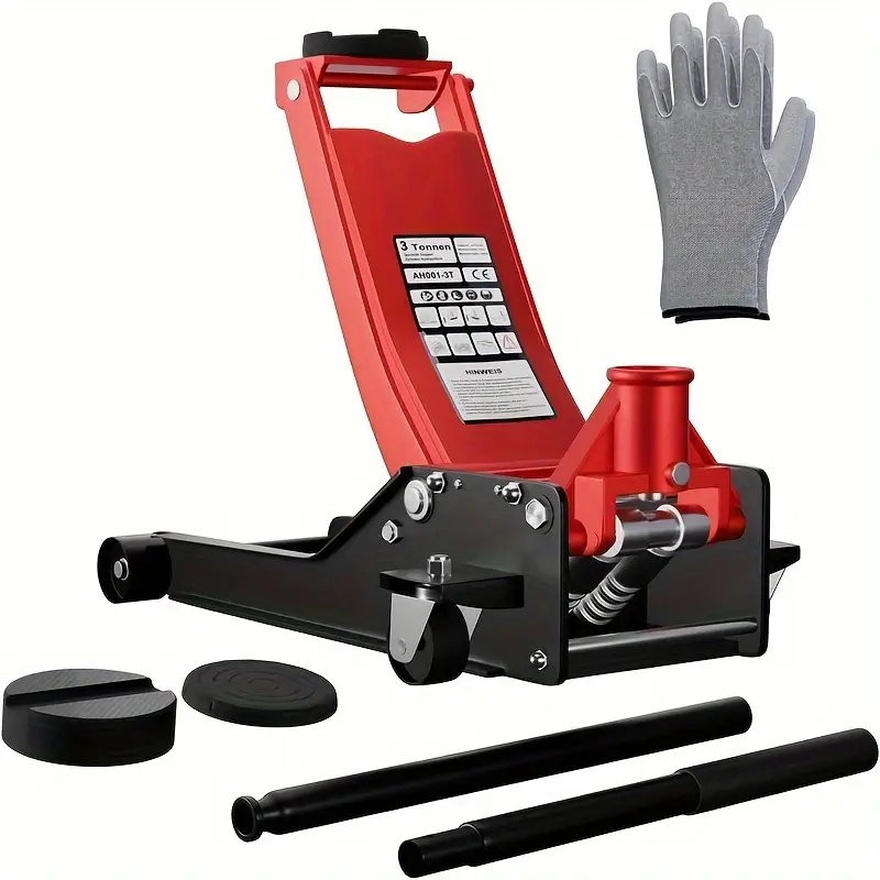 Perfekter Helfer für jede Werkstatt! Dieser TRESKO Hydraulik-Wagenheber schafft locker 3 Tonnen und hebt dein Auto sicher an. Mit der flachen Bauweise von nur 75mm kommt er sogar unter tiefergelegte Fahrzeuge - super praktisch! Die Doppelkolben-Technik macht das Anheben super einfach und kraftsparend. Die 360° Rollen lassen sich super leicht rangieren, und das inkludierte Zubehör ist der Hammer: Zwei Gummiauflagen schützen deine Fahrzeugunterseite, dazu gibt's eine Anti-Rutsch-Matte, Arbeitshandschuhe und sogar einen Reifenprofilmesser. Die Hubhöhe von 75-510mm ist für fast jedes Fahrzeug ideal, ob Kleinwagen, SUV oder Transporter. Aus robustem pulverbeschichtetem Stahl - hält ewig und sieht dabei noch gut aus. Ein Must-Have für jede Garage!