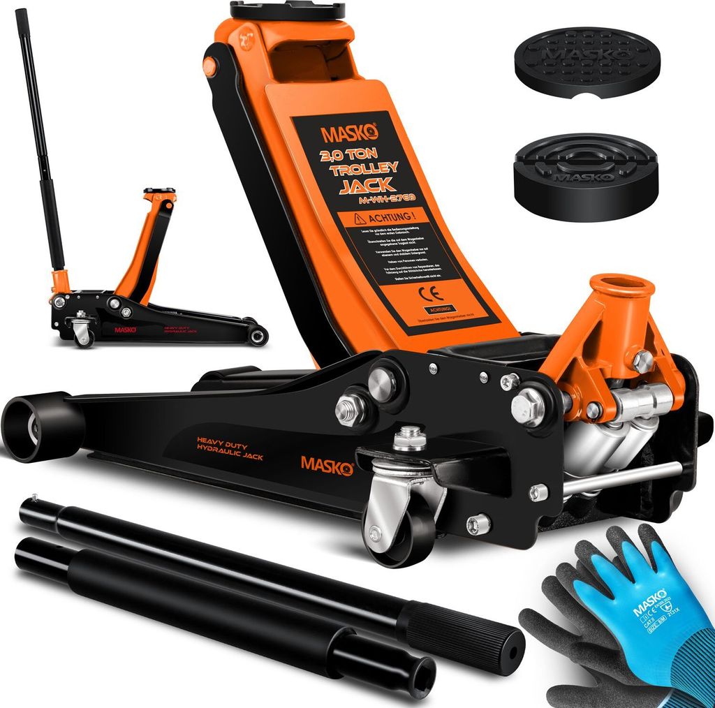 TRESKO Hydraulischer Wagenheber 3 Tonnen - Flacher Rangierwagenheber Mit 360° Rollen & Zubehör