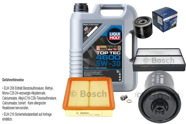 Pass auf, dieses Inspektionspaket hat alles, was du für den Ölwechsel brauchst! Enthält 5 Liter LM Top Tec 4600 5W-30 Motoröl - Spitzenqualität für Benzin- und Dieselmotoren. Dazu passender Ölfilter und Luftfilter - alles aus einer Hand. Das Öl ist ACEA C3 zertifiziert und perfekt für Motoren mit Partikelfilter. Reduziert Kraftstoffverbrauch und schützt optimal vor Verschleiß. Für BMW, Mercedes, VW und viele andere Marken geeignet. Ob für die Werkstatt oder daheim - damit machst du den Ölwechsel zum Kinderspiel. Alles drin, was du brauchst - einfach öffnen und loslegen. Damit bleibt dein Motor lange fit und leistungsstark!