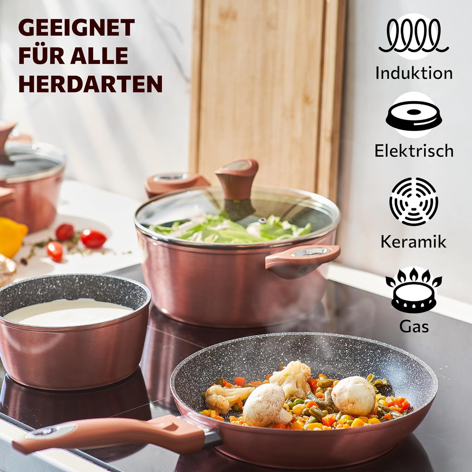 12-teiliges Topfset Mit Antihaftbeschichtung - Induktionsgeeignet Für Alle Herdarten