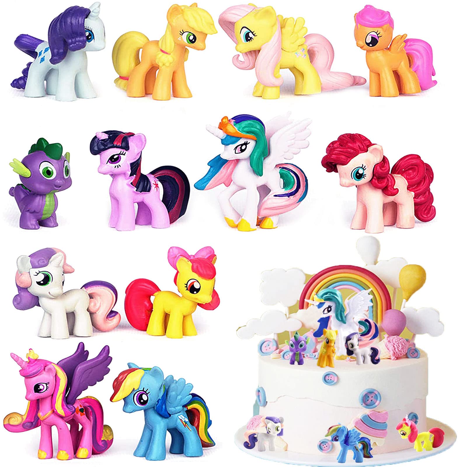 12 Stück Einhorn Torten Deko - Mini Figuren Für Kuchen & Geburtstag