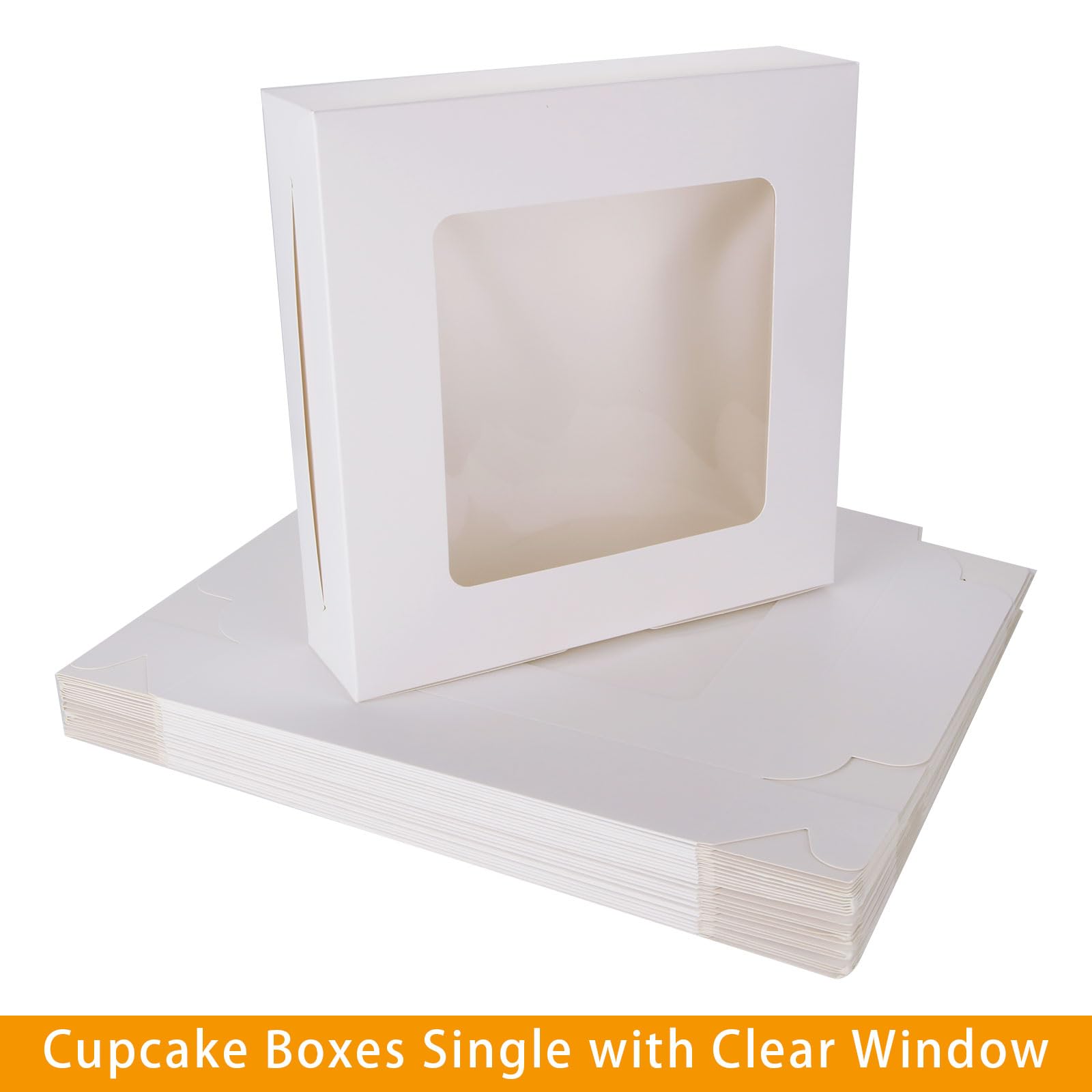 25 Stück Tortenboxen Mit Sichtfenster - Weiße Kuchenschachteln 16x16x9cm
