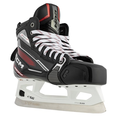 Torhüter aufgepasst! Die CCM EFLEX 6.5 Schlittschuhe sind speziell für dich gemacht. Ultra-leicht und mit einer Steifigkeit von 130 geben sie dir den perfekten Halt für spektakuläre Paraden. Der 3D-gespritzte Stiefel sitzt wie angegossen, das HD-Mikrofaserfutter sorgt für Komfort auch bei langen Spielen. Besonders praktisch: Der integrierte Spitzenbissschutz in der Filzzunge bewahrt deine Füße vor harten Schüssen. Das Speedblade XSG-System mit BladeLock-Technologie gibt dir maximalen Grip auf dem Eis. Die speziell für Torhüter entwickelte 10F27 Kufen-Geometrie unterstützt die vorwärtsgeneigte Position - perfekt für schnelle Reflexe! EVA-Schaumstoff-Fußbett für zusätzlichen Komfort und Dämpfung. Ob Training oder wichtiges Spiel - mit diesen Schlittschuhen bist du bestens ausgerüstet. Dein neuer Geheimtipp zwischen den Pfosten!