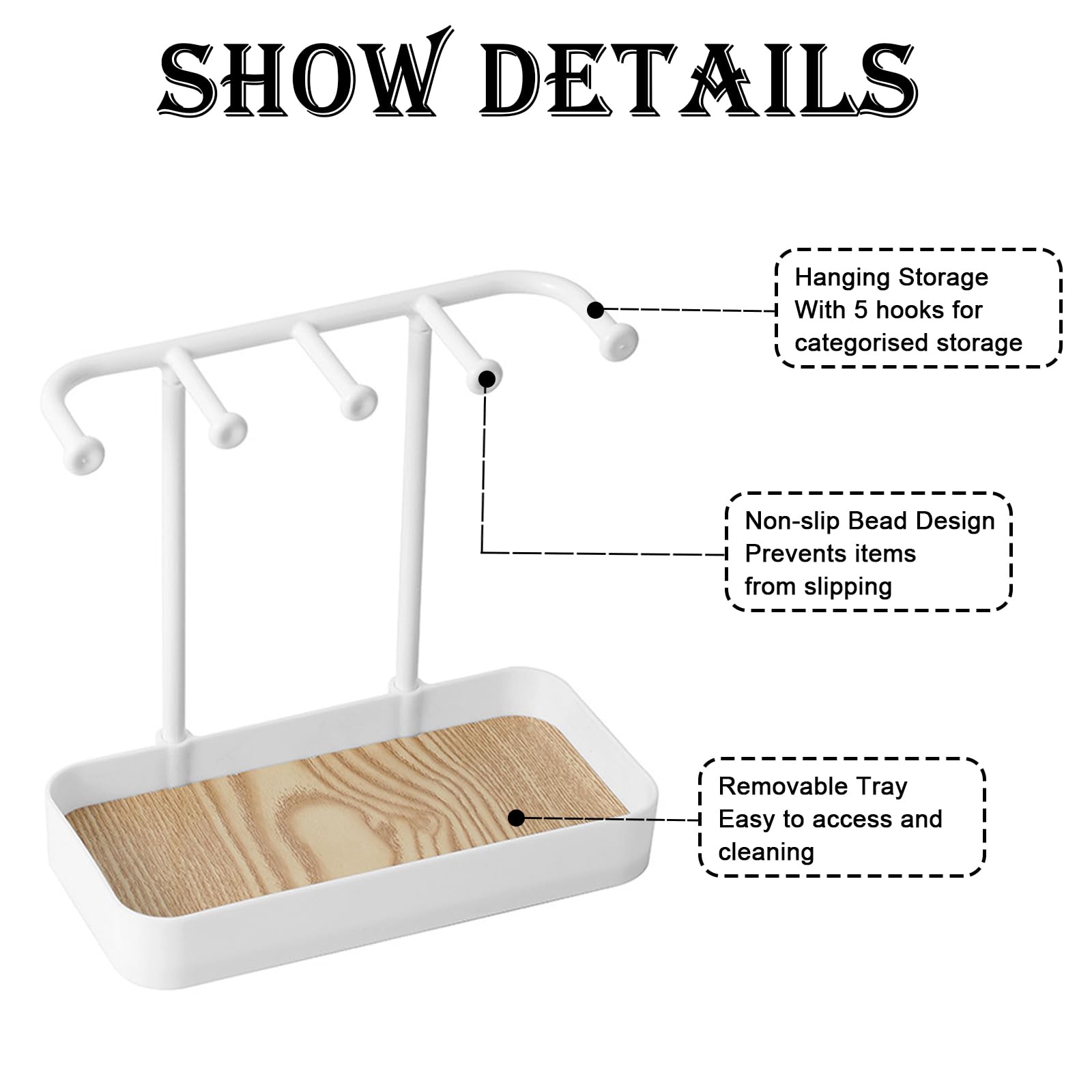 Torytoe Schmuckständer Mit Tablett - 5 Haken Organizer Für Ketten & Ringe (Weiß)
