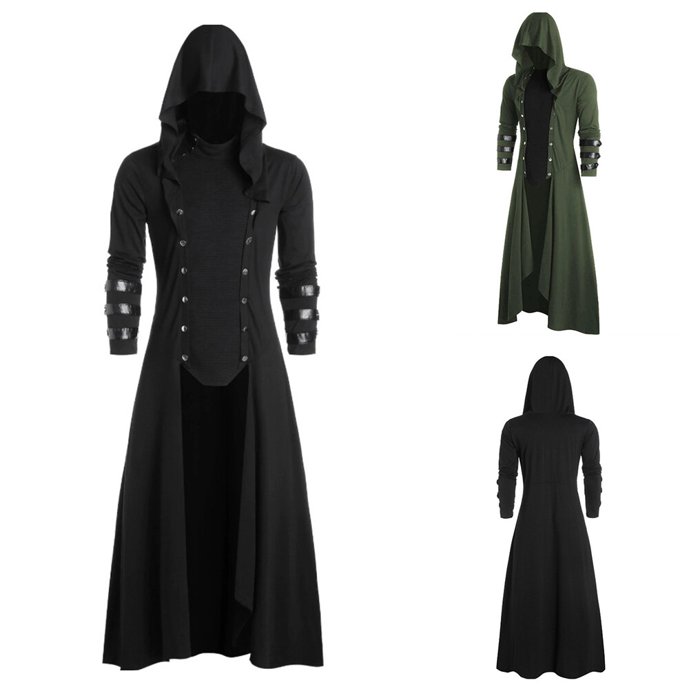 Herren Gothic Cardigan Mit Totenkopf - Langer Kapuzenumhang Dark Fantasy