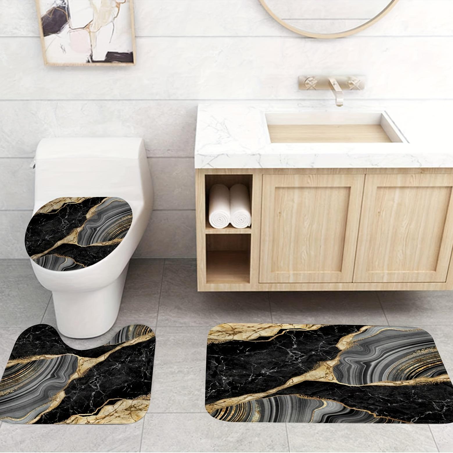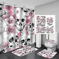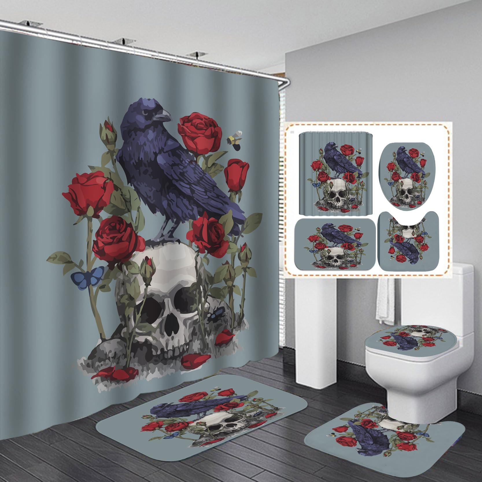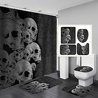 SHUOFUSH Duschvorhang-Set Mit Totenkopf-Muster - 4-teilig Mit Matte & WC-Bezug
