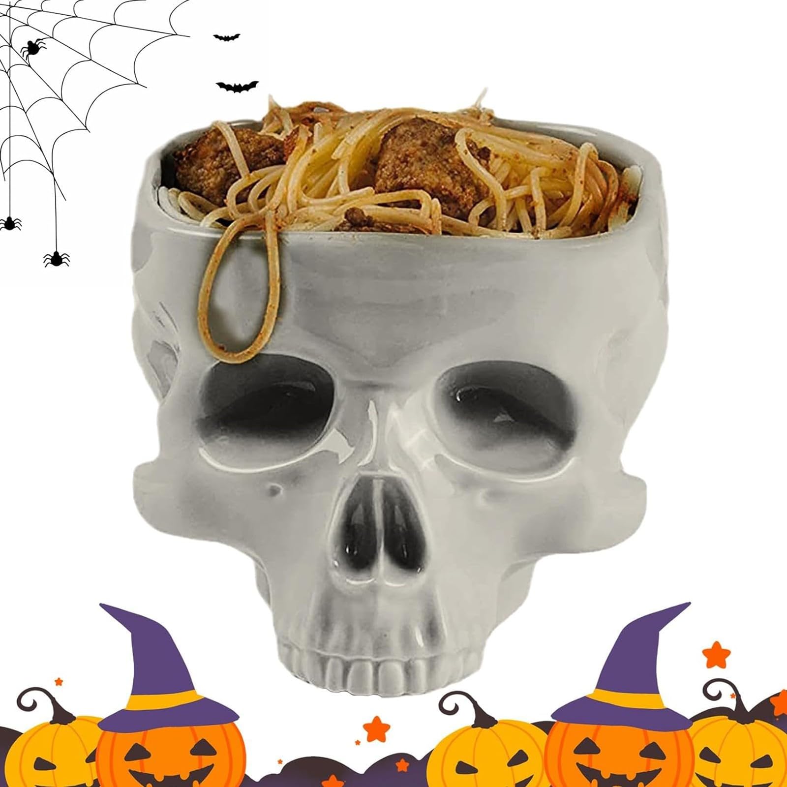 Ob du sie mit Süßigkeiten für die kleinen Trick-or-Treat-Besucher füllst oder als ausgefallene Servierschale für deine Gäste verwendest - diese Totenkopf-Schüssel garantiert gruseligen Spaß und viele neidische Blicke!