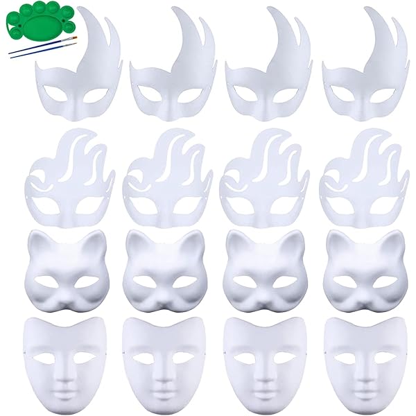 Toyhood 9 Stück DIY Papiermasken - Weiße Blanko-Masken Zum Bemalen Für Karneval & Cosplay