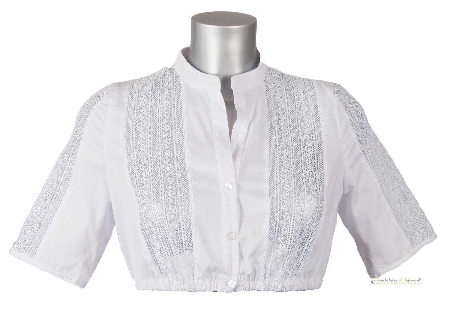 Dirndlbluse Weiß Langarm - Traditionelle Trachtenbluse Mit Spitze & V-Ausschnitt