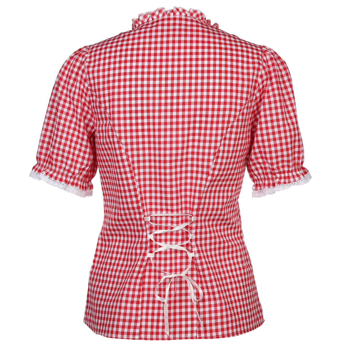 Trachtenbluse Rot/Weiß Karo - Traditionelle Dirndl-Bluse Mit Herzknöpfen & Stehkragen