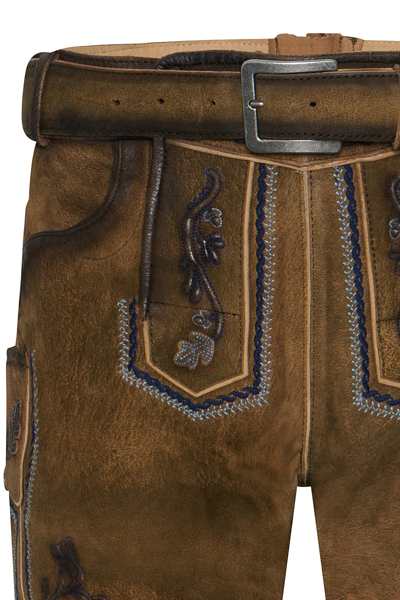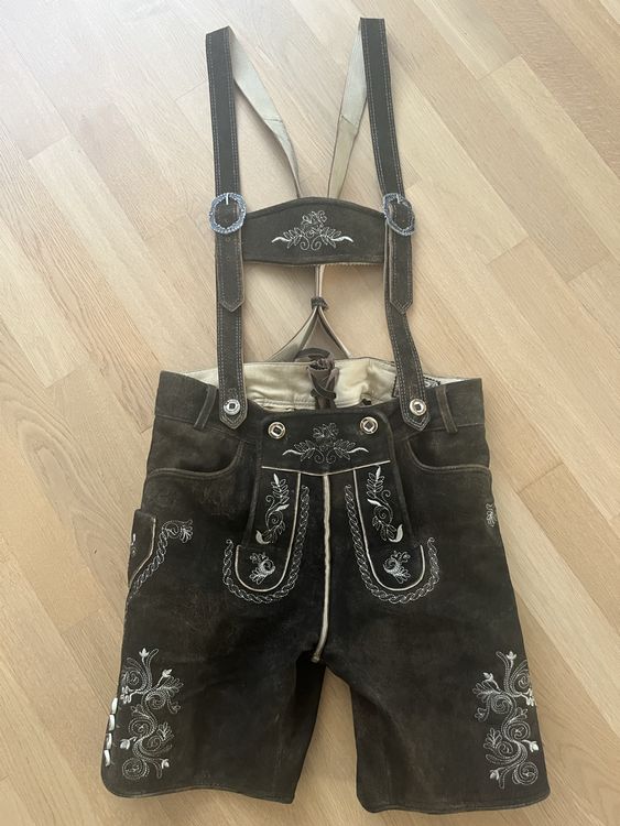 O'zapft is! Mit dieser authentischen Herren-Lederhose bist du perfekt fürs Oktoberfest und andere bayerische Feste gerüstet. Die kurze Lederhose ist im klassischen Trachtenstil gehalten und verkörpert echte bayerische Handwerkskunst. Hochwertige Verarbeitung und traditionelle Stickereien machen sie zu einem zeitlosen Begleiter, der Jahre hält. Der bequeme Schnitt mit elastischem Bund sorgt für optimale Passform und Bewegungsfreiheit - selbst nach stundenlangem Feiern! Die Lederhose lässt sich super mit traditionellen Trachtenhemden, Westen und anderen Accessoires kombinieren. Ob mit oder ohne Träger - du entscheidest! Die typischen Details wie Stickereien, Knöpfe und traditionelle Verzierungen machen jede Hose zu einem Unikat. Perfekt nicht nur fürs Oktoberfest, sondern auch für andere Volksfeste, Hochzeiten oder einfach, wenn du bayerisches Flair verbreiten willst. Ein Must-have für jeden Trachtenliebhaber, der Wert auf Authentizität und Qualität legt. Und das Beste: Die Hose wird mit der Zeit immer bequemer und entwickelt eine ganz individuelle Patina - je öfter du sie trägst, desto besser wird sie!