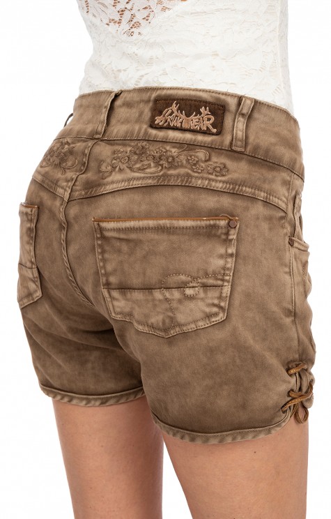 Trachtenjeans Damen 3/4 - Stretch Lederhose Für Oktoberfest & Trachtenoutfits