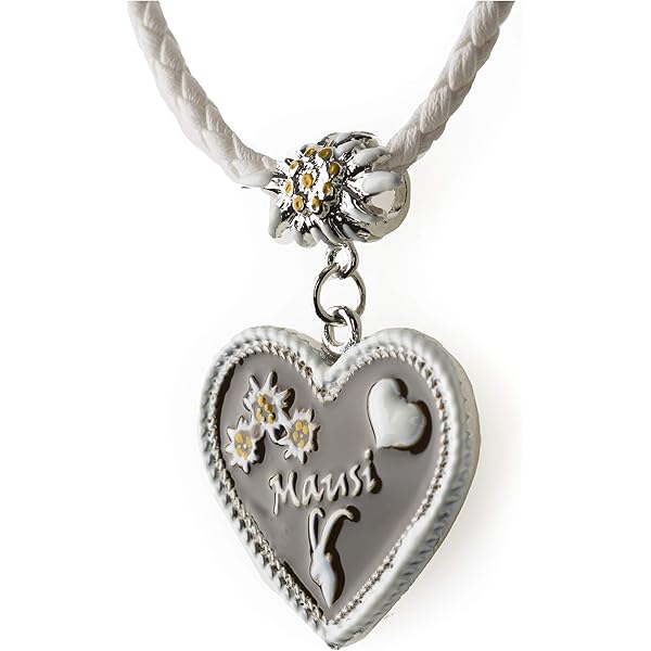 Trachtenkette Wiesnherz - Elegantes Herz Mit Strass & Edelweiss Anhänger